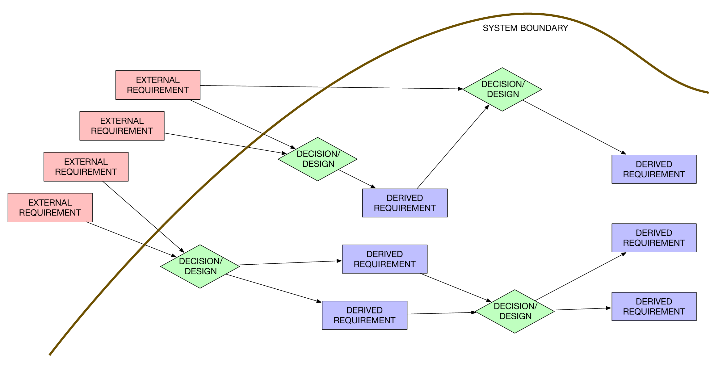 • derived requirements — that is, requirements arising from organizational decisions about how to satisfy other requirements